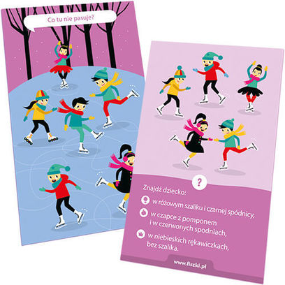 Na awersie każdej karty są różnorodne zabawy, znane i lubiane przez dzieci - labirynty, połącz kropki, znajdź pary itd. Ponieważ każdy typ zabawy powtarza się cyklicznie (co ok. 6-7 kart), dzieci nie znudzą się po kilku kartach.