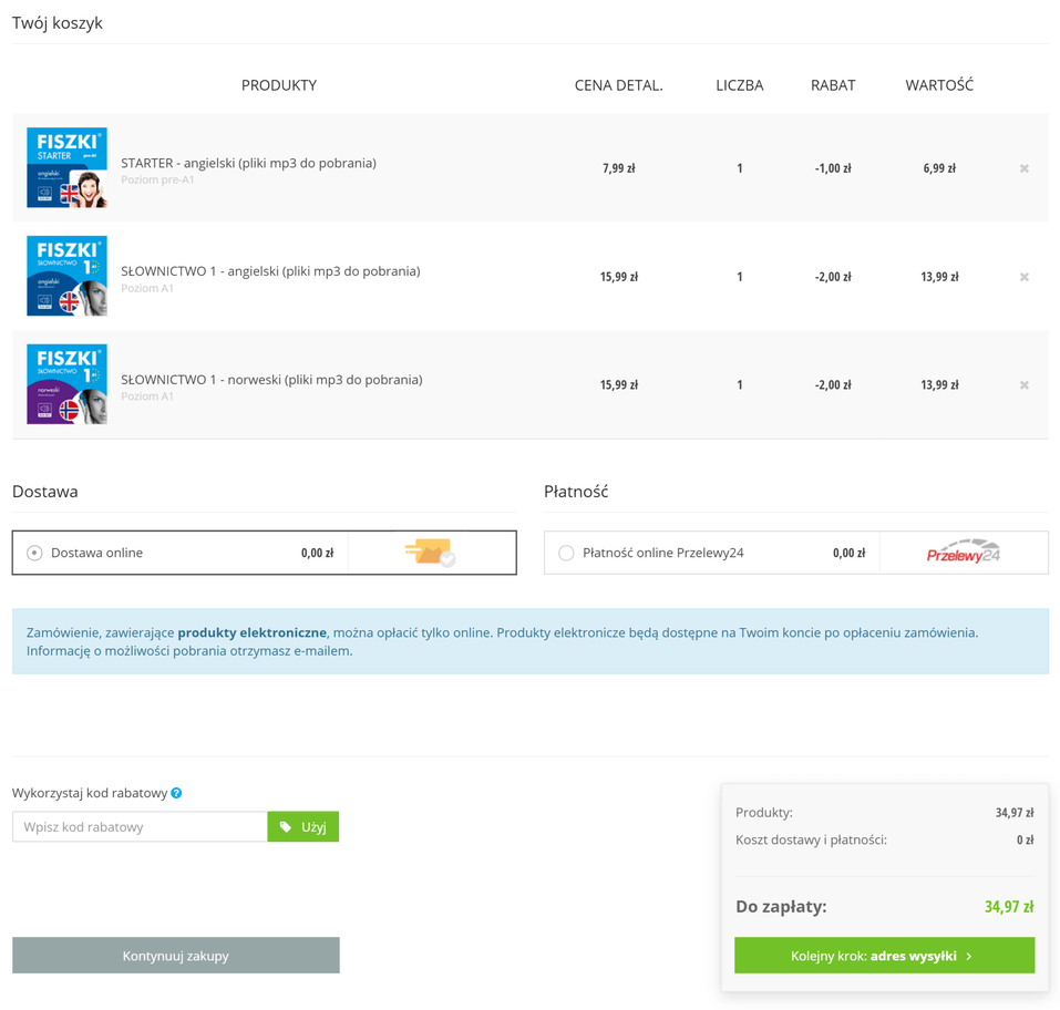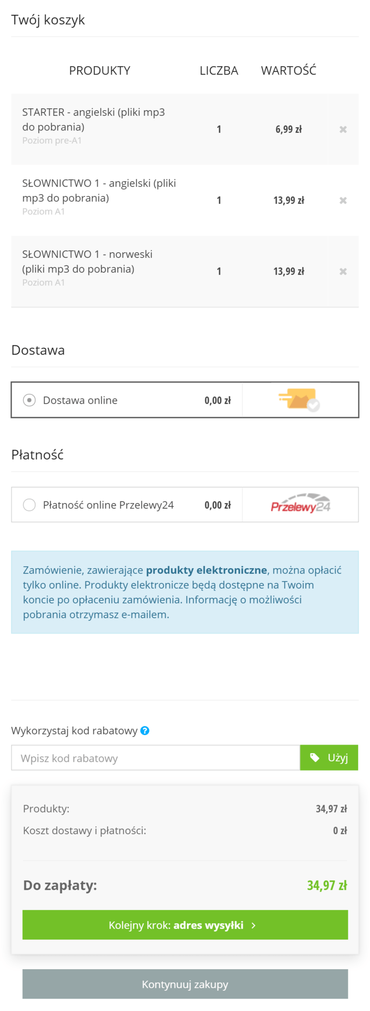 Tak, istnieje możliwość jednoczesnego zakupu produktów objętych i nieobjętych promocją. Dodanie do koszyka produktów nieobjętych promocją nie uniemożliwia realizacji kuponu, ale wiąże się z koniecznością zapłaty za dodatkowe produkty w wybrany przez klienta sposób.
